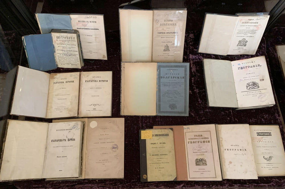 В изложбата са включени първите учебници, публикувани на български език от епохата на Възраждането. Подредени тематично, във витрините могат да се видят буквари, граматики, речници и разговорници, учебници по история, география, аритметика, математика, физика, химия, хигиена, психология, логика, учебници с общопросветен характер, търговски ръководства и други помагала.