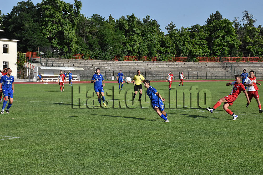В 36-градусовата жега на стадион „Хасково“ в парк „Ямача“ играчите на треньора Живко Желев се наложиха с 2:0 над „Спартак“ (Пловдив). През второто полувреме се разписаха Христо Стоянов и Ангел Костов.
