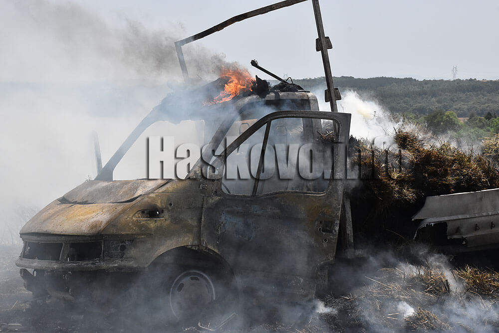 Товарен автомобил със сено се запали в ранния следобед край Хасково.
