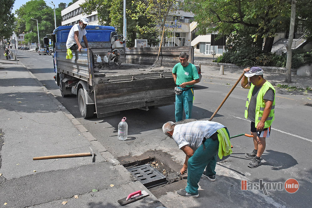 Продължава ремонтирането на уличните шахти в Хасково. В ранния следобед се повдигаше шахта на булевард „България“ до Младежкия център.