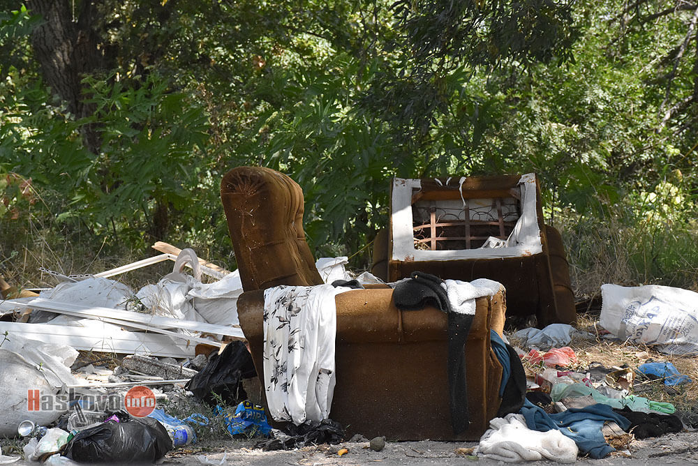 Боклуци са изхвърлени покрай пътя за картинг пистата до Хасково.