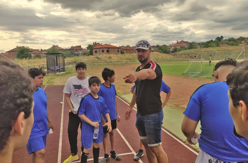 Три пъти в седмицата настанени в бежанския център деца и младежи тренират футбол, разпределени в три възрастови групи.