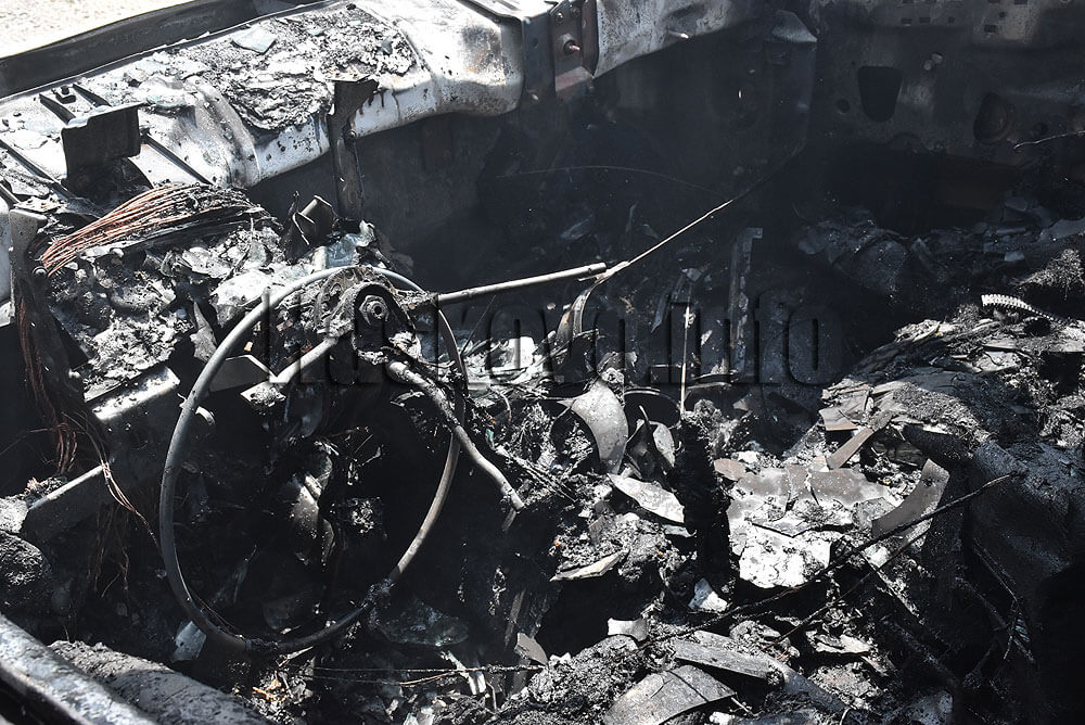 Пожарникарите са изгасили пламъците, но возилото е изгоряло. Днес ще бъде извършен оглед на колата за установяване на причината за пожара.