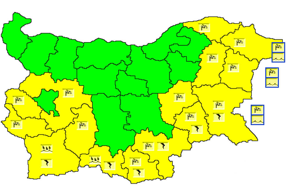 Очаква се силен североизточен вятър с пориви до 80 км/ч. Ще има краткотрайни валежи от дъжд и гръмотевични бури. На места явленията ще са интензивни и ще има условия за градушки. Максималните температури ще са около 25 градуса.