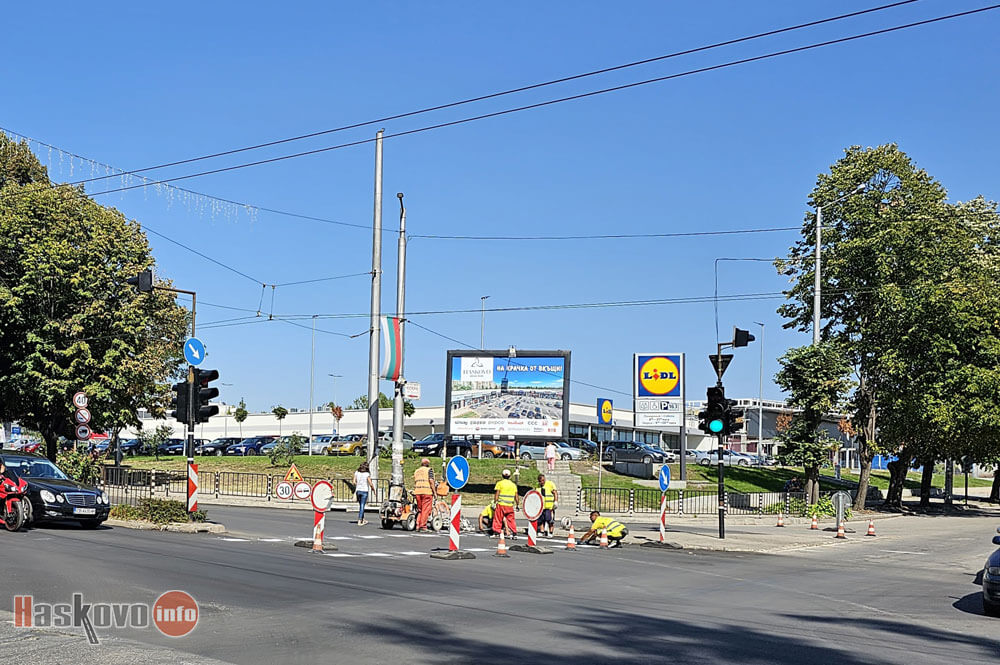 Платното на хасковския булевард „Раковски“ към квартал „Орфей“ е затворено за движение заради полагането на маркировка.