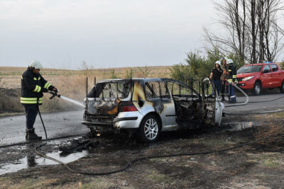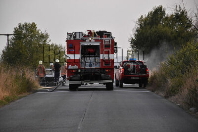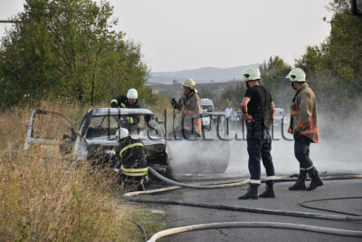 Инцидентът стана около 18 часа на пътя за село Въгларово. Пламъците от колата се прехвърлиха на крайпътните сухи треви.