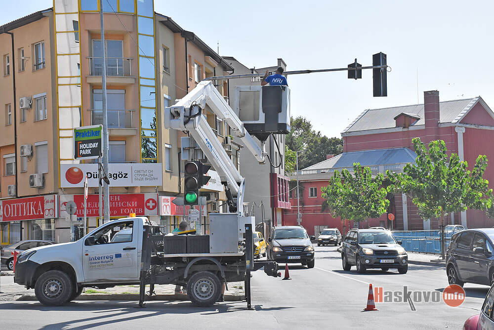 Следобед беше подменена повредена камера от видеонаблюдението на кръстовището до зеленчуковия пазар в Хасково.