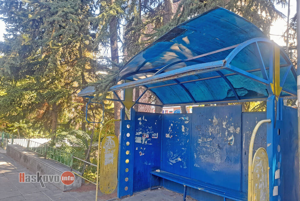 Повреден е покривът на автобусната спирка до входа на хасковската ПГМЕТ "Стойчо и Кица Марчеви".