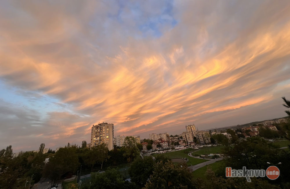 Красив залез заснеха читатели на Haskovo.info в областния град. Има предположение, че цветовете се дължат на запрашеност на атмосферата от африкански въздушни маси.