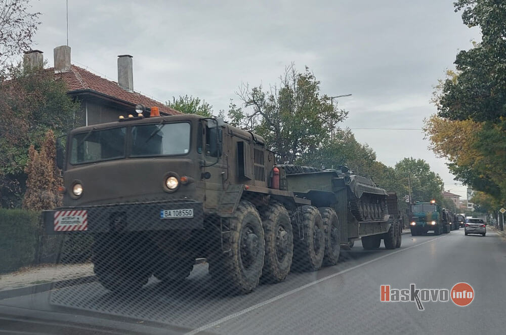 Военна колона премина преди обяд през Димитровград на път за полигона „Корен“ край Хасково, където започва учение. Колоните ще се движат до 24 октомври.