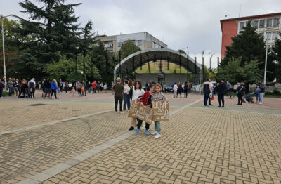 На площада бяха подредени тематични детски рисунки. Последва протестно шествие под надслов „Търпението свърши!“ от площада до ТЕЦ-а. Жандармерия беше оградила периметъра, за да не се срещнат двата протеста.