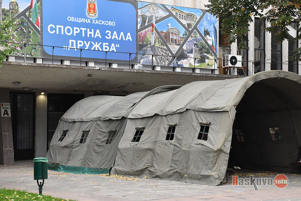 Военни палатки вече са разпънати пред хасковската спортна зала „Дружба“, където в неделя ще се приемат бюлетините и изборните книжа.