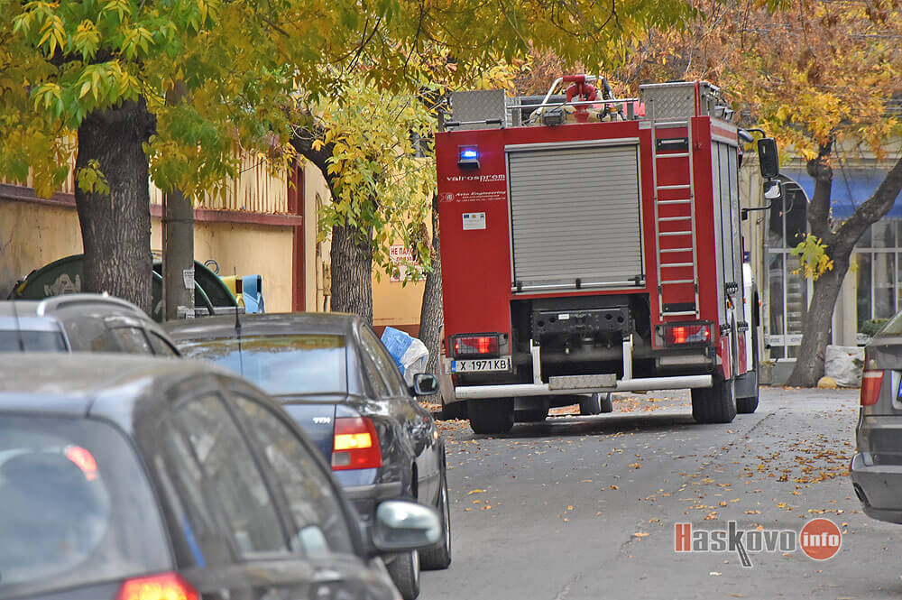 Екип на пожарната изгаси в ранния следобед горящи отпадъци в контейнери на улица „Преслав“ в центъра на Хасково.