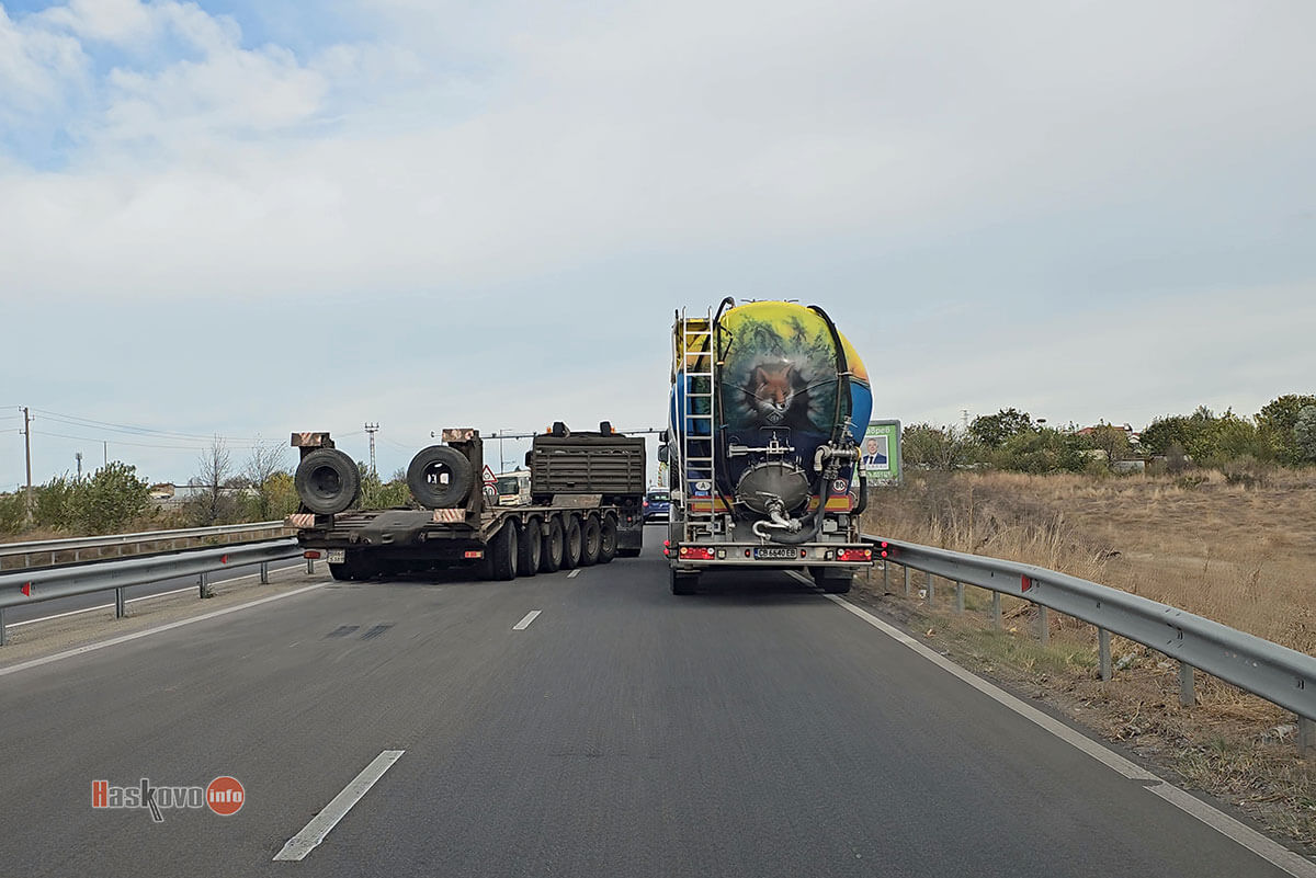 Тежка военна техника аварира преди обяд на влизане в Хасково откъм Кърджали. Зя кратко се образува колона от чакащи автомобили.