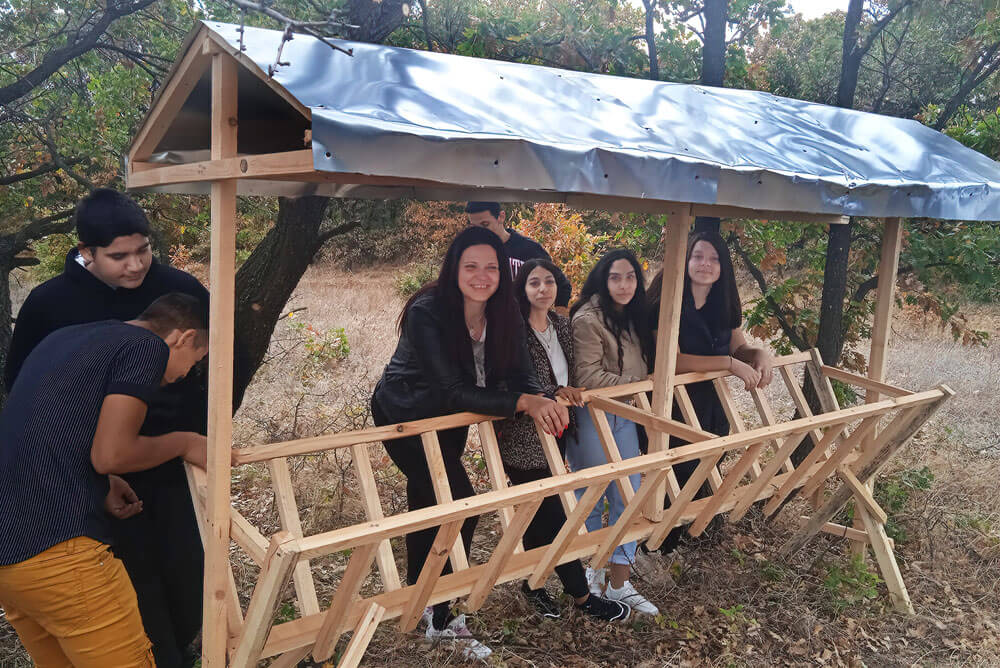 Ученици от Професионалната гимназия „Захари Стоянов“ в Харманли изработиха хранилка за едър дивеч.