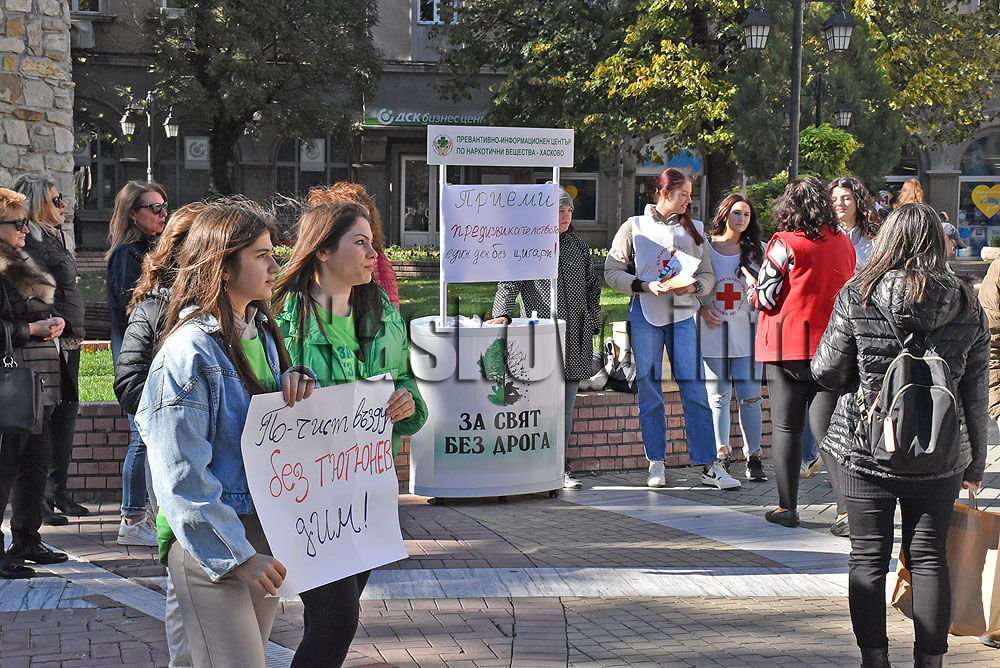 Доброволци от Превантивно-информационния център по наркотични вещества и БЧК, както и специалисти от РЗИ проведоха на площад „Атлантически“ в центъра на Хасково акция, посветена на Международния ден без тютюнопушене – 16 ноември.
