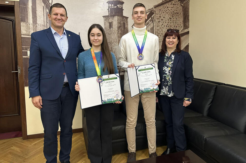 Бронзовите медалисти от Международната олимпиада по астрономия Стела Бинева и Мартин Недев получиха специални награди от кмета Станислав Дечев за изключителните си постижения, съобщават от Община Хасково.