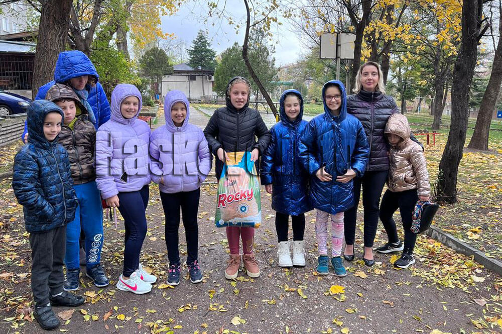 Сиана и други деца със своите родители се събраха по обяд пред сградата на кметството. Те купиха храната и я оставиха за бездомните животни в парка на квартал „Овчарски“.