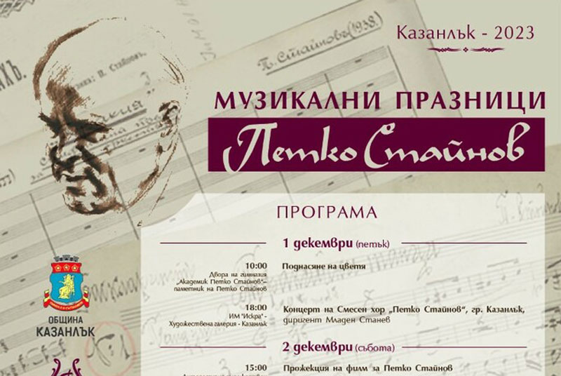Повече от 30-години в началото на декември казанлъчани традиционно отдават почит към Петко Стайнов и неговия забележителен принос за българската музика и култура. Организатори са общинската администрация и фондация „Петко Стайнов“ с подкрепата на Исторически музей „Искра“ и други културни институции.