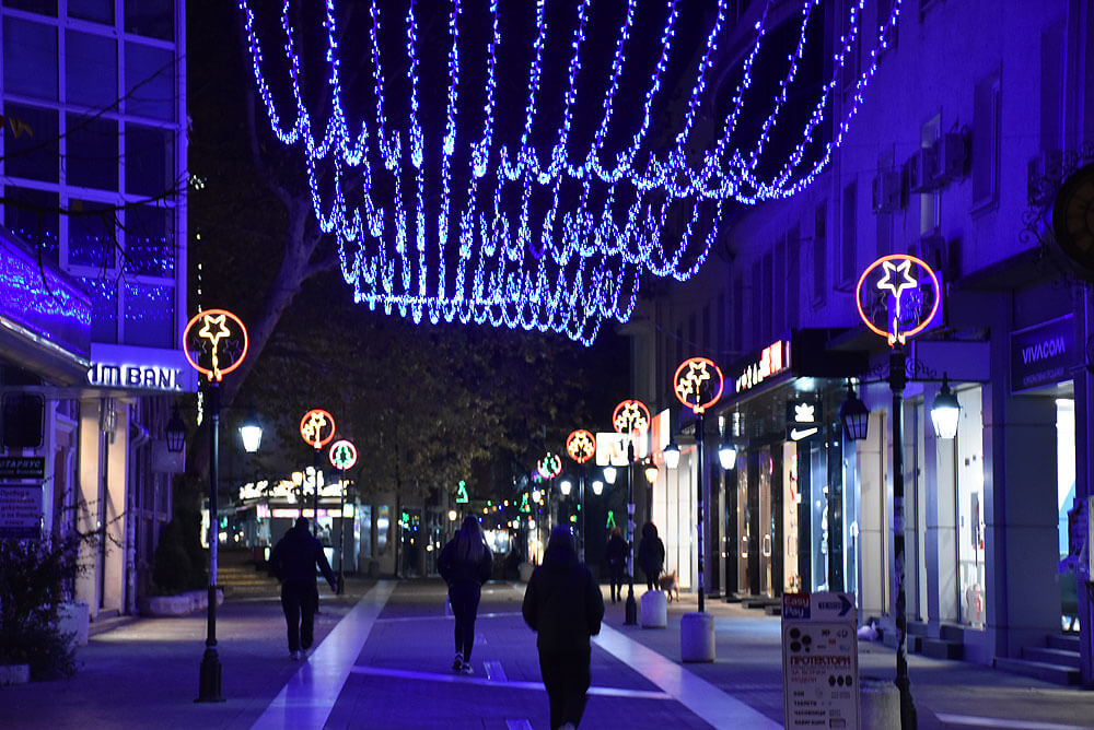 Коледно-новогодишната украса грейна тази вечер в центъра на Хасково.