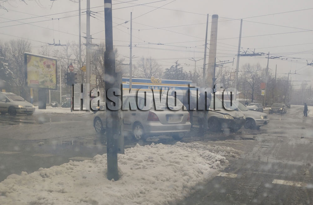 Два леки автомобила се удариха в ранния следобед на кръстовището между булевардите „Съединение“ и „Васил Левски“ до бившата Цигарена фабрика в Хасково.