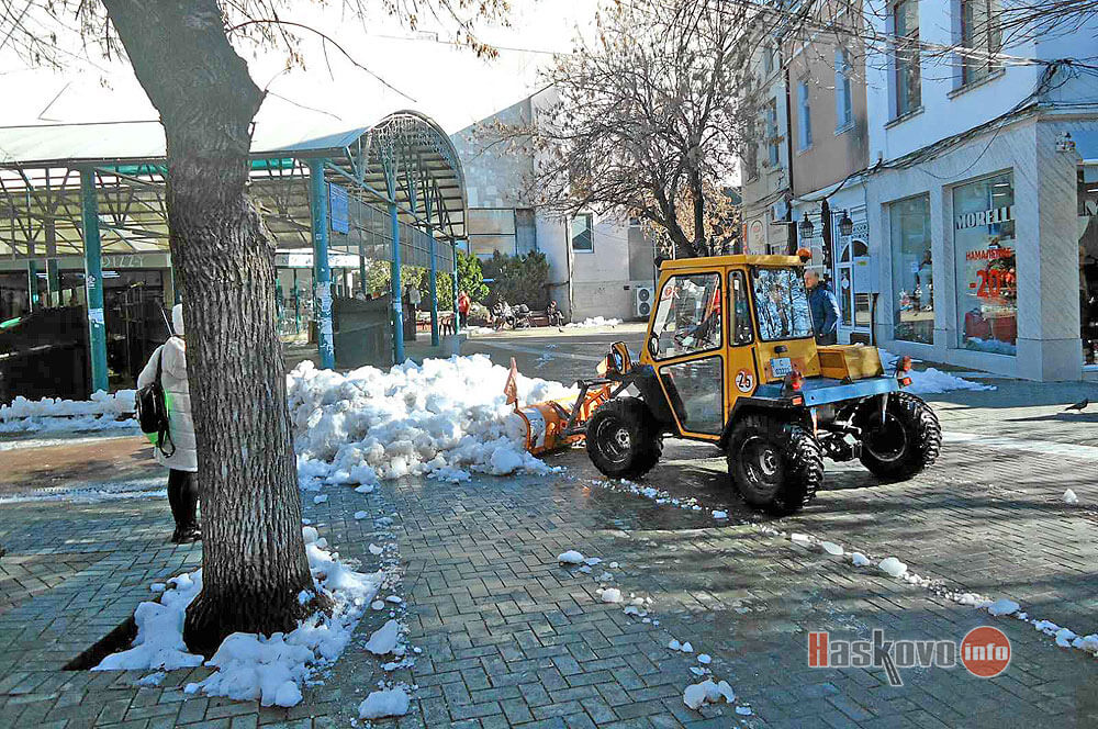 Продължава почистването на снега в центъра на Хасково.