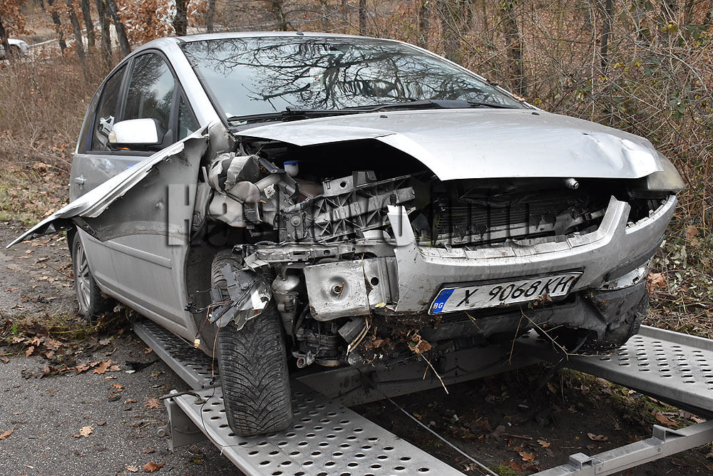 На десен завой на влажен участък колата се е завъртяла и се е ударила последователно в стълб от уличното осветление и канавка.