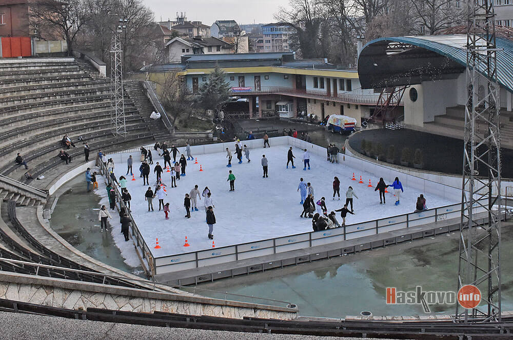 Ледената пързалка в Хасково отвори в първия работен ден от новата година за радост на десетки деца.