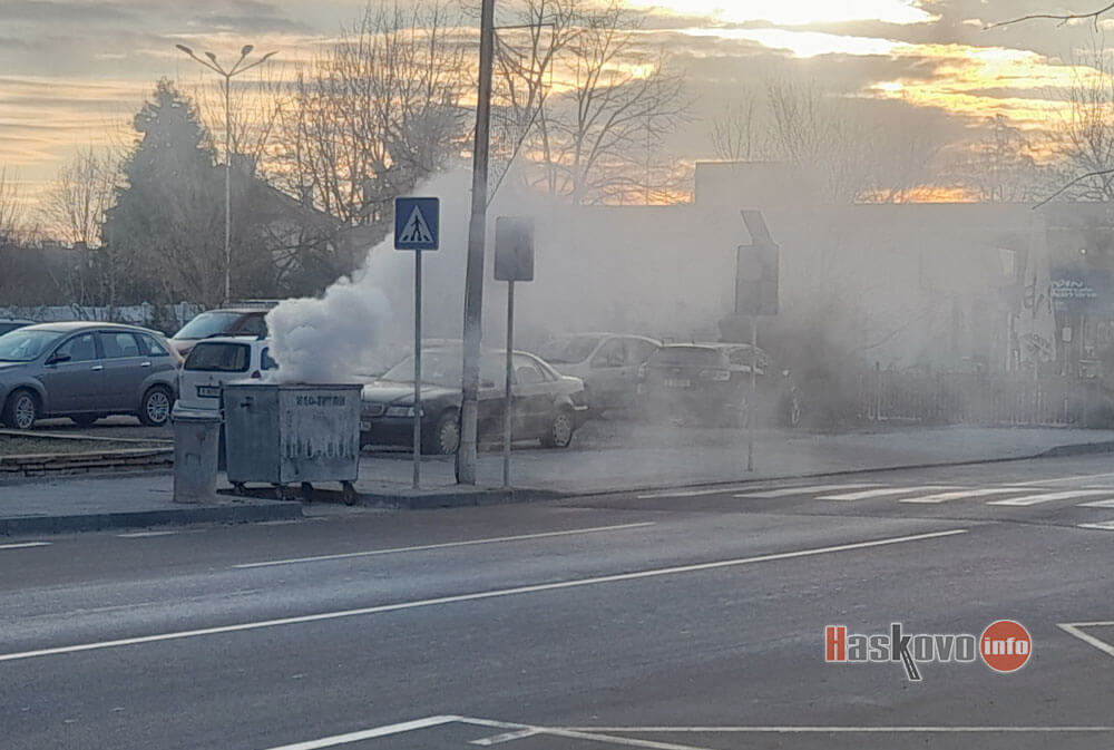 Контейнер за отпадъци пламна тази сутрин и задими булевард „Раковски“ в Димитровград до кръговото с булевард „Димитър Благоев“.