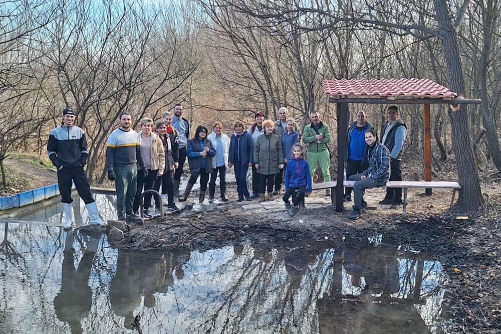 Доброволците почистиха района около басейнчето и покрай главния път на селото. Отстранени бяха клони, които пречеха на достъпа до топилото. Беше изградена беседка с навес.
