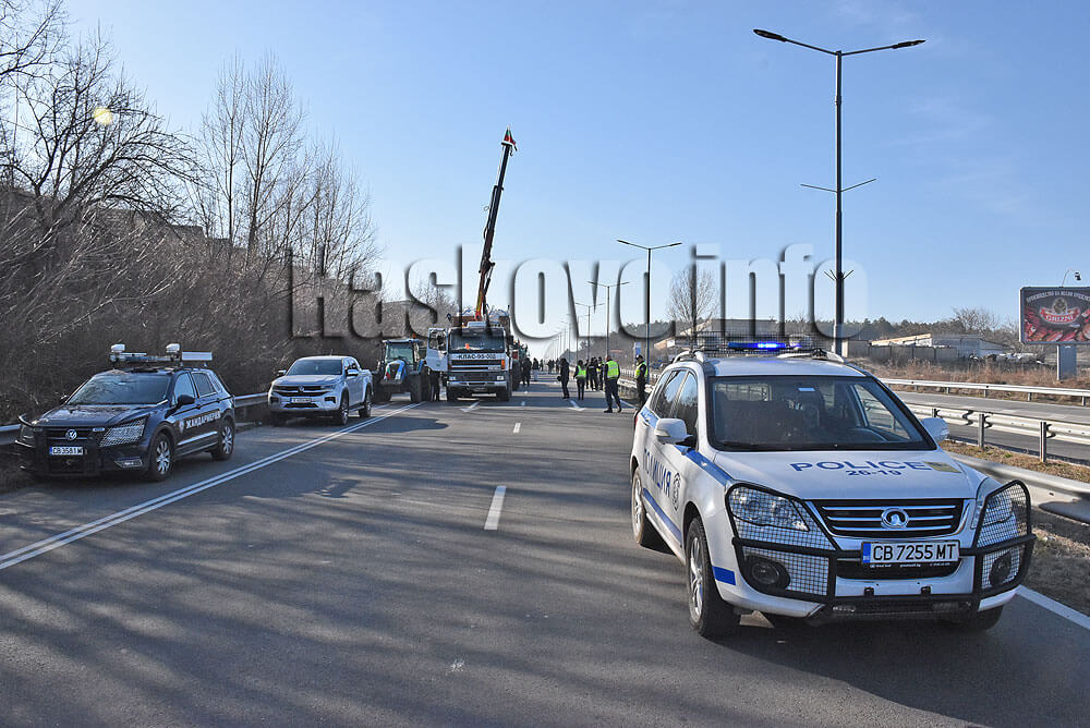 От 10 до 15 часа селскостопанска техника затвори международните пътища I-8 и I-5 при детелината до бирената фабрика край Хасково. В събота и неделя няма да има протести. Ако до понеделник не се постигне споразумение с правителството е възможно да има още по-мащабни протести.