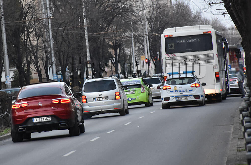 Автобус с работници насмете спрени коли в час пик на хасковски булевард