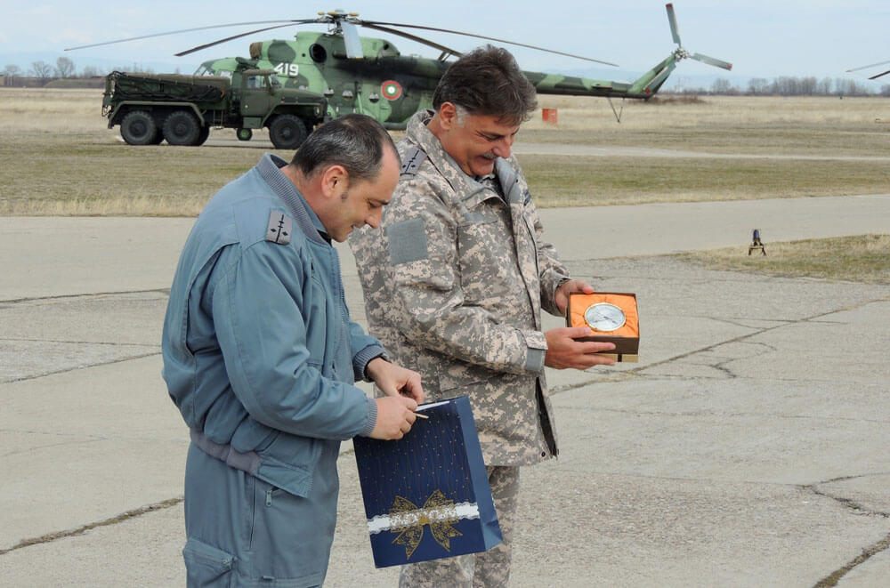 Командирът на военното формирование бригаден генерал Димитър Иванов му благодари за неуморния труд, високия професионализъм и богатия практически опит, който е проявявал по време на дългогодишната си служба. Последва размяна на подаръци и снимки за спомен с присъстващите колеги.