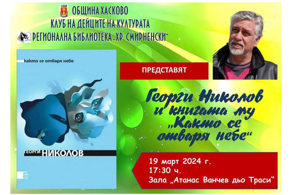 Новата книга на Георги Николов ще бъде представена днес в Регионалната библиотека „Христо Смирненски“ в Хасково. Това е 14-ата книга на твореца на словото след десет стихосбирки, два романа и сборник с очерци.