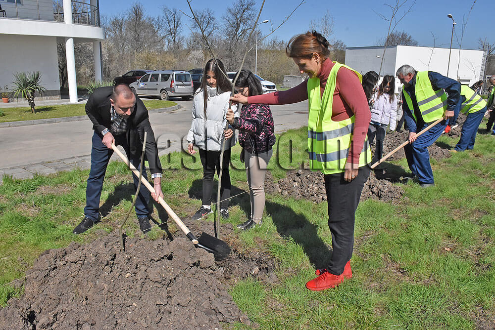 В акцията по залесяването се включиха кметът Станислав Дечев, заместниците му Динко Тенев и Танер Емин, областният управител Гинка Райчева със своя заместник Митко Петров.