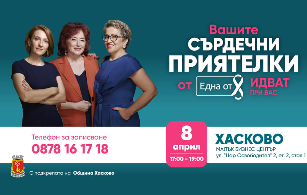 Фондация Нана Гладуиш – „Една от 8“ ще посети Хасково със своята програма „Сърдечни приятелки“, за да подкрепи дамите с диагноза рак на гърдата от града и областта. Кампанията се осъществява с подкрепата на Община Хасково.