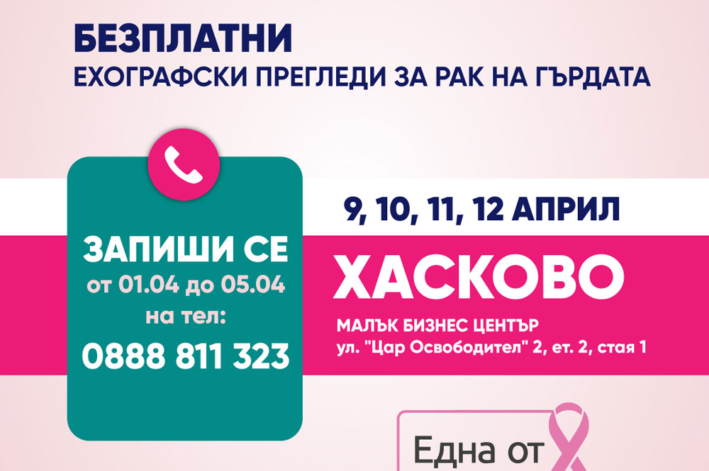 Фондацията ще посети Хасково със своята програма „Ела и се прегледай“, за да предложи безплатни мамологични прегледи. Изследванията са ехографски и ще се извършват от д-р Младен Младенов, мамолог-гинеколог от ПСАГБ „Света София“ – София.