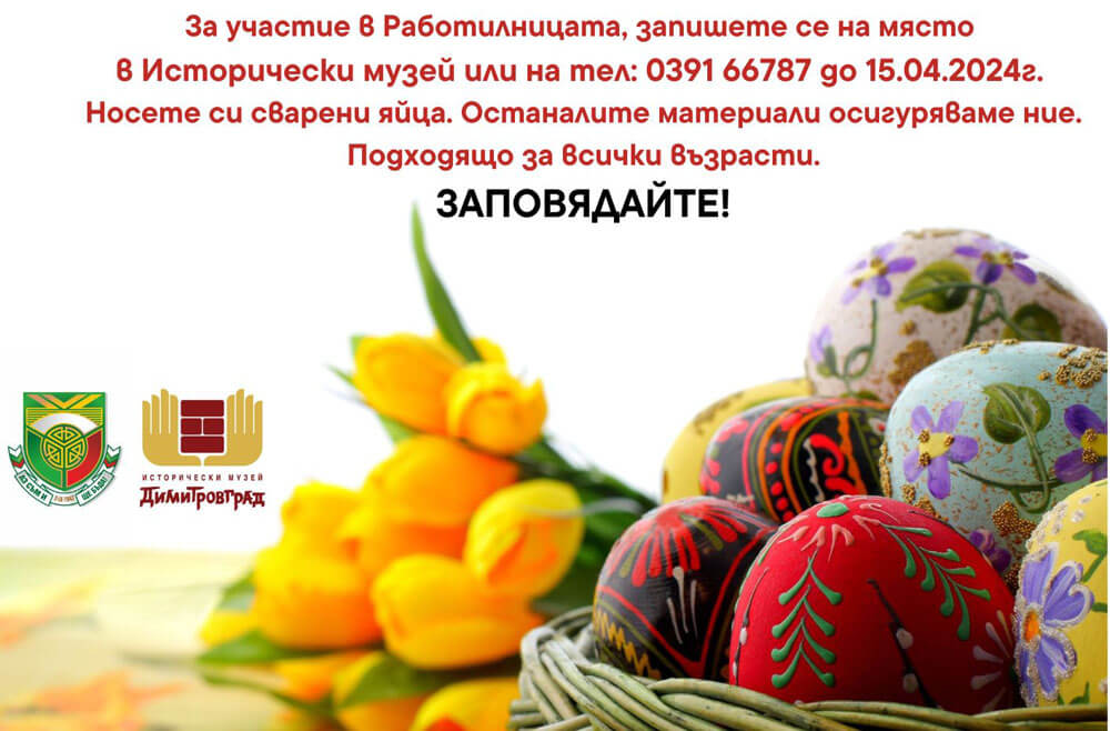 Традиционната Великденска работилница организира Исторически музей – Димитровград на 18 април от 10:30 часа, съобщават от общината.