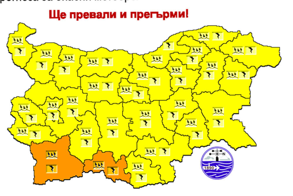 Очакваните количества валежи са от 20 до 35 литра на квадратен метър. Предупреждения има за цялата страна.