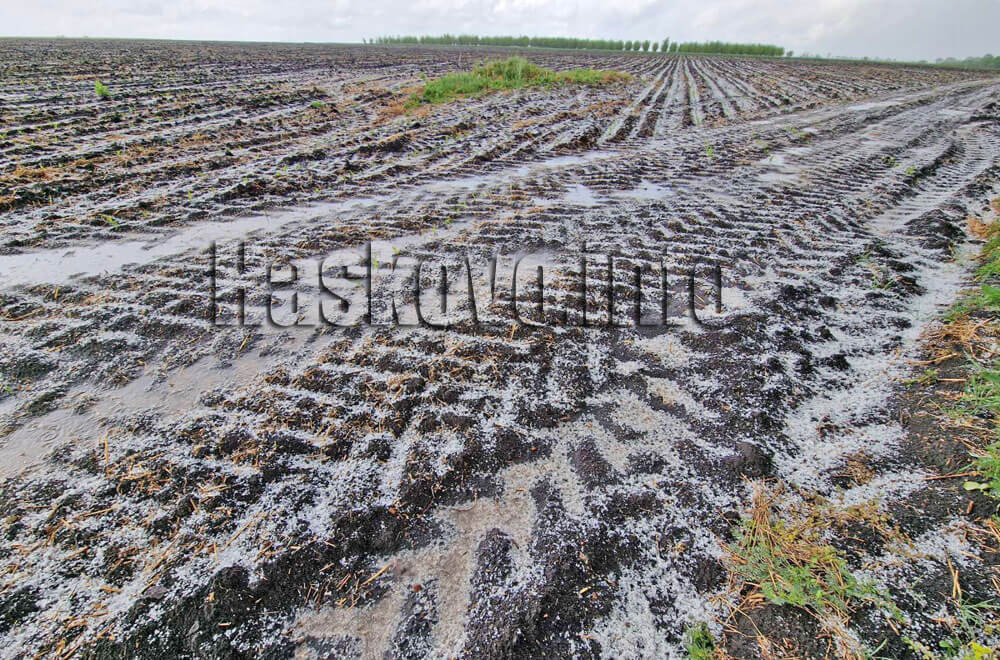 Нивите между селата Горски извор и Ябълково побеляха от ледените зърна, сигнализираха читатели на Haskovo.info.