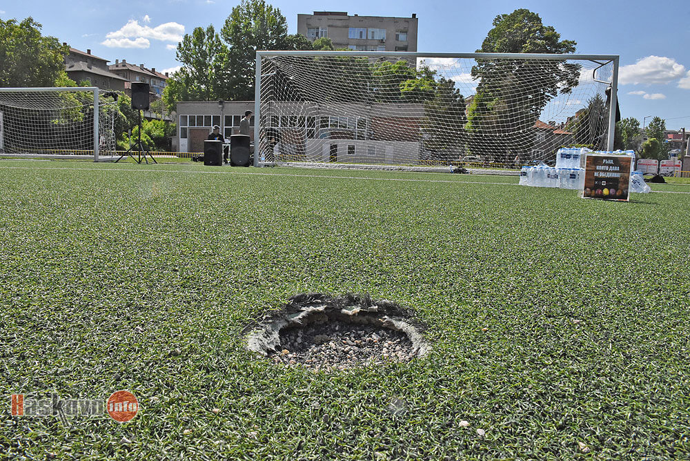 Дупка се е отворила в изкуствения футболен терен на стадион "Младост" в Хасково.