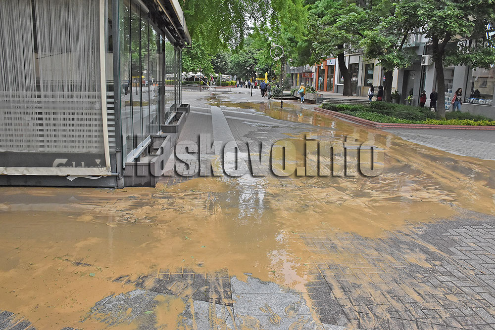 Кални води от авария заляха преди обяд пешеходната зона в центъра на Хасково.