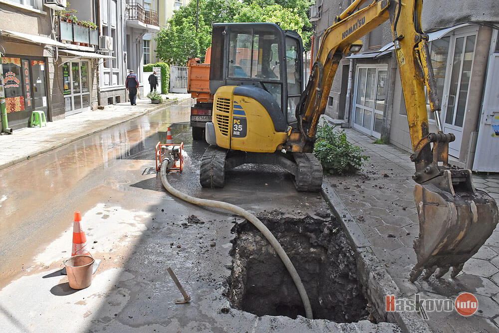 Екип на ВиК отстранява авария на улица "Христо Ботев" в центъра на Хасково.