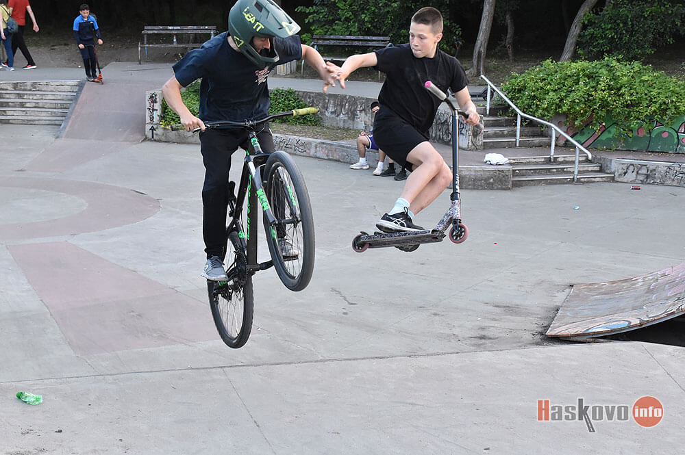 Младежи показват уменията си на скейтборд площадката в хасковския парк „Кенана“.