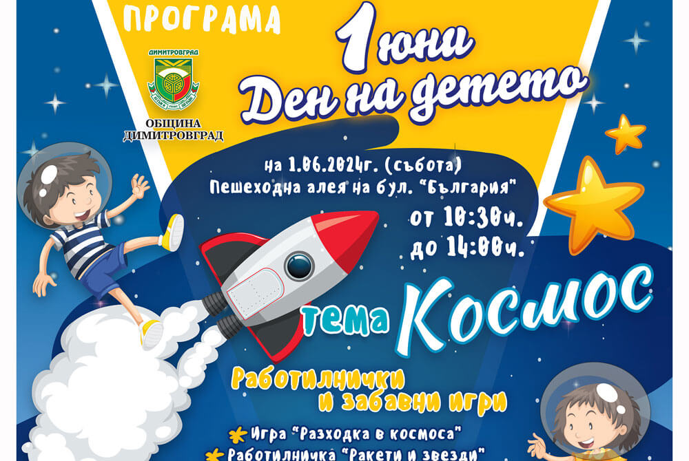 Забавна програма за малчуганите под мотото „Космос“ ще има в Димитровград за Деня на детето – 1 юни, съобщават от общината.