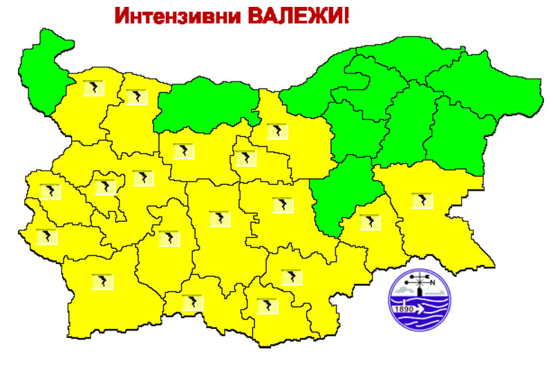 В следобедните часове и привечер ще има краткотрайни валежи с гръмотевици. Очакват се и градушки. Количествата на валежите ще са до 20 – 25 литра на квадратен метър.