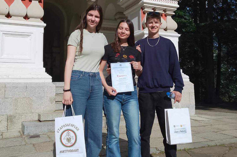 На националния конкурс „Бог е любов“ първо място спечели Зара Янева в 10 клас в направление „Приложни изкуства“. Зара е единствената класирана ученичка от Хасковска област и тя става носител на националната стипендия за изявени деца.