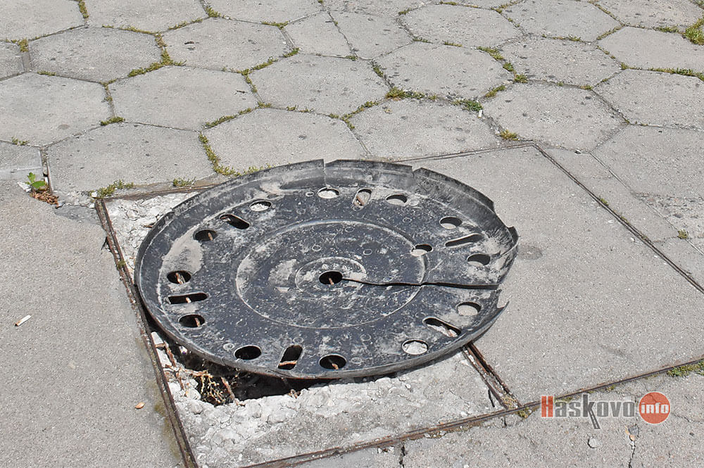 Шахта със счупен капак на кръстовището до Зеленчуковия пазар в Хасково е обезопасена с подръчни средства.