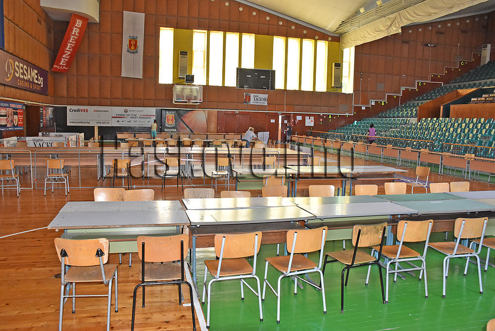 Междувременно спортна зала „Дружба“ вече се подрежда за изборната нощ.