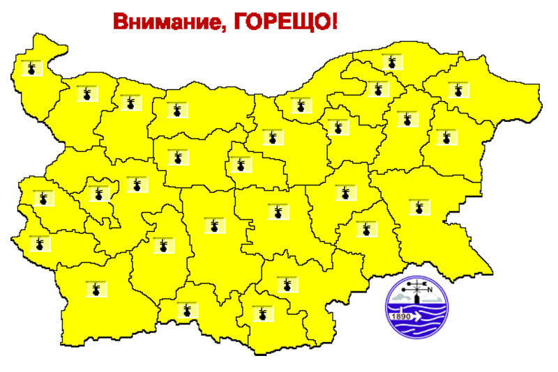 За пореден ден е обявен жълт код за опасно високи температури в цялата страна от Националния институт по метеорология и хидрология.